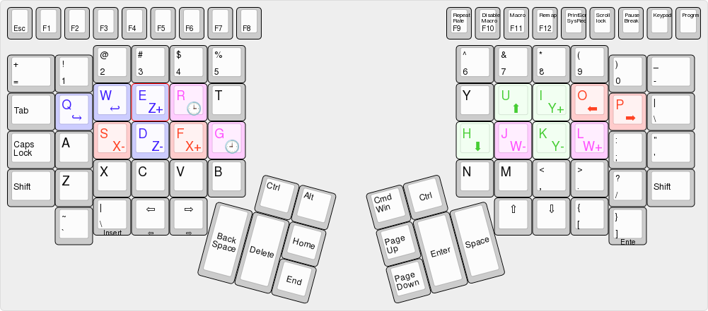 E D Vor Zurück S F Links Rechts