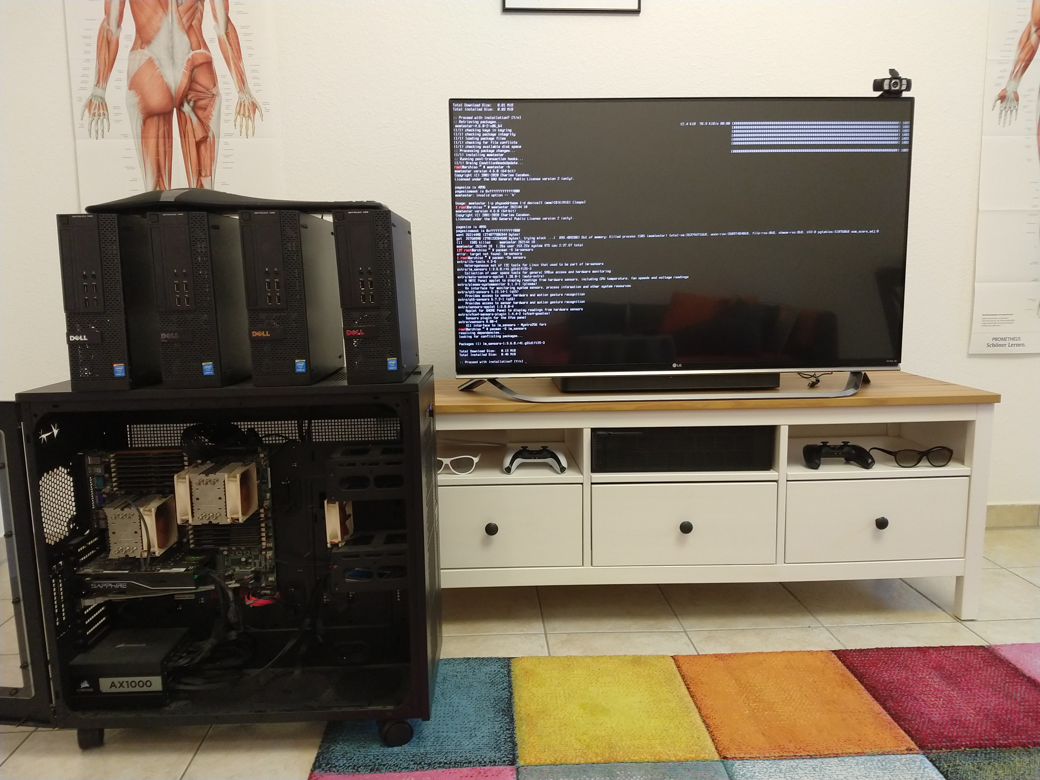 Das war 2021 noch die einzige Option 4GB/sec. Speicher libre zu bekommen, mittlerweile erreicht man das auch mit einer NVM - aber die Zugriffszeiten sind natürlich immernoch der absolute Knaller. In beide CPU/RAM Combos passte da noch geerraaaadde so die Wikidata-Datenbank rein. Mega!!! Natürlich heizt man hier seine Wohnung mit 250W und mittlerweile eher Coffee-Table und rollbarer Hardware-Schrank :D